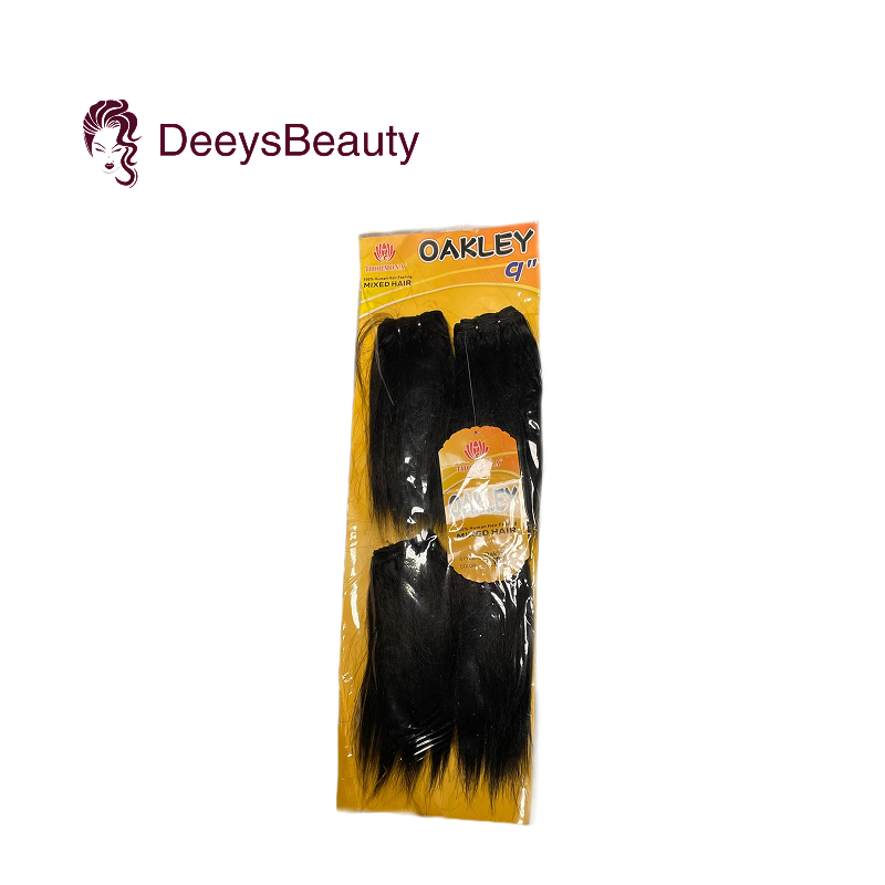 Oakley mixed hair with a 100% human hair feel. Soft, versatile, and luxurious. Comes in 4 bundles, each 9” long.